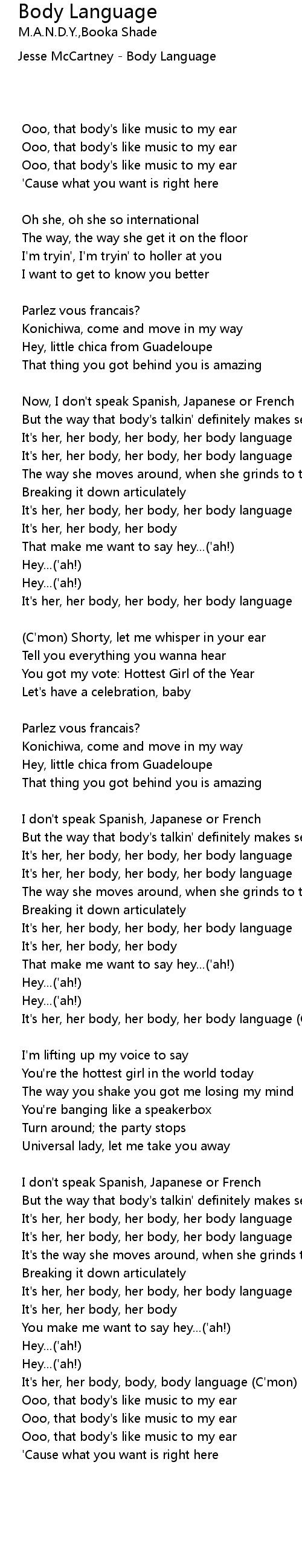 Body Language Lyrics