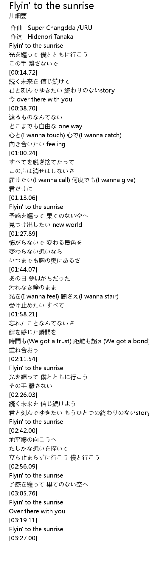 | [02:59.15] | 予感を纏って 果てのない空へ |