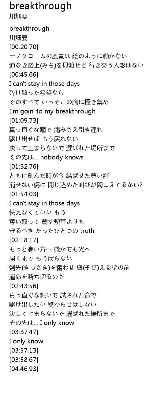 | [03:17.69] | 駆け出したい 終わらせはしない |