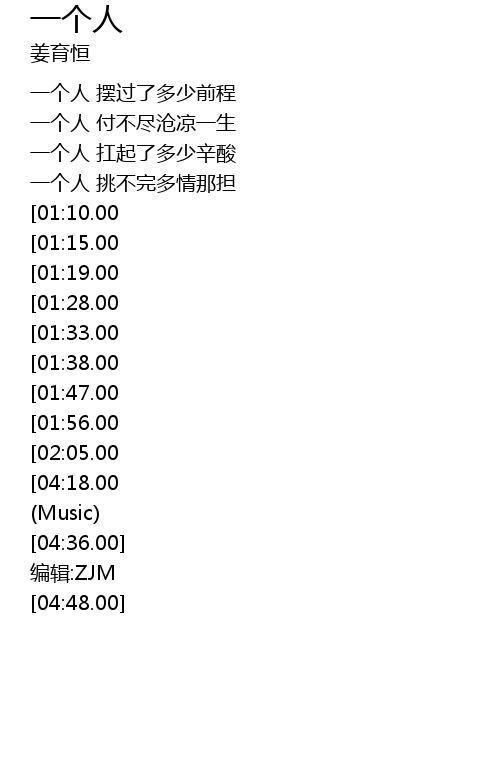 | [04:26.00][04:18.00][02:14.00] | yí ge rén shì yǒng yuǎn de dù mèng hé |