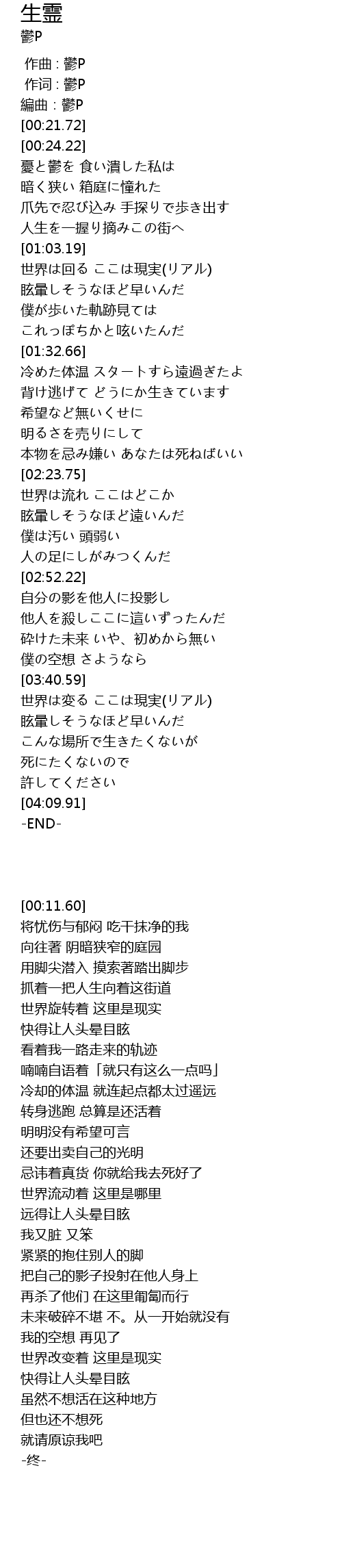 | [00:11.60] | 編曲:鬱P |