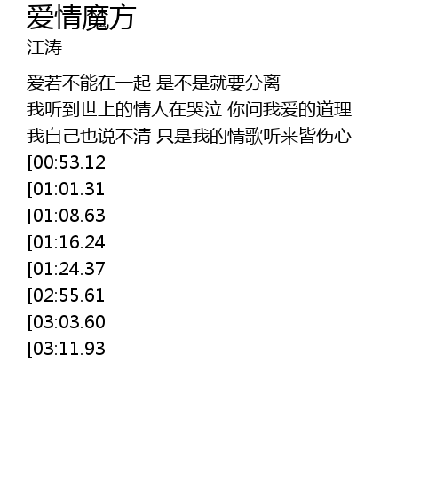 | [00:40.76] | 我自己也说不清 只是我的情歌听来皆伤心 |