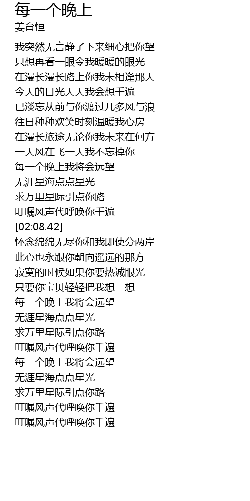 | [02:01.18] | 叮嘱风声代呼唤你千遍 |