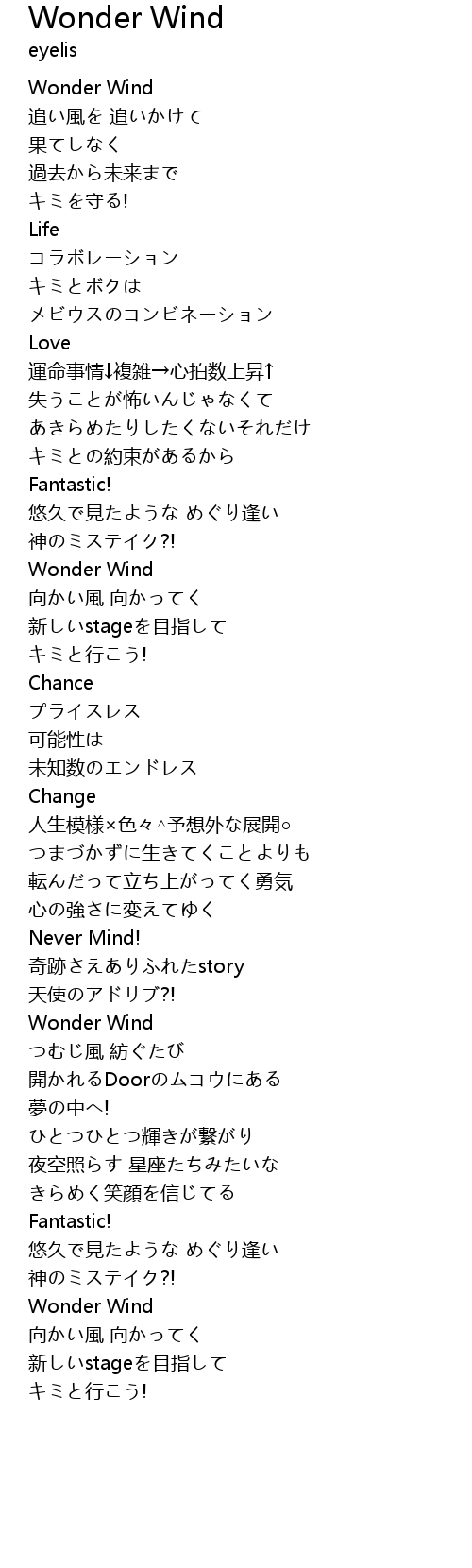 | Song | Wonder Wind |