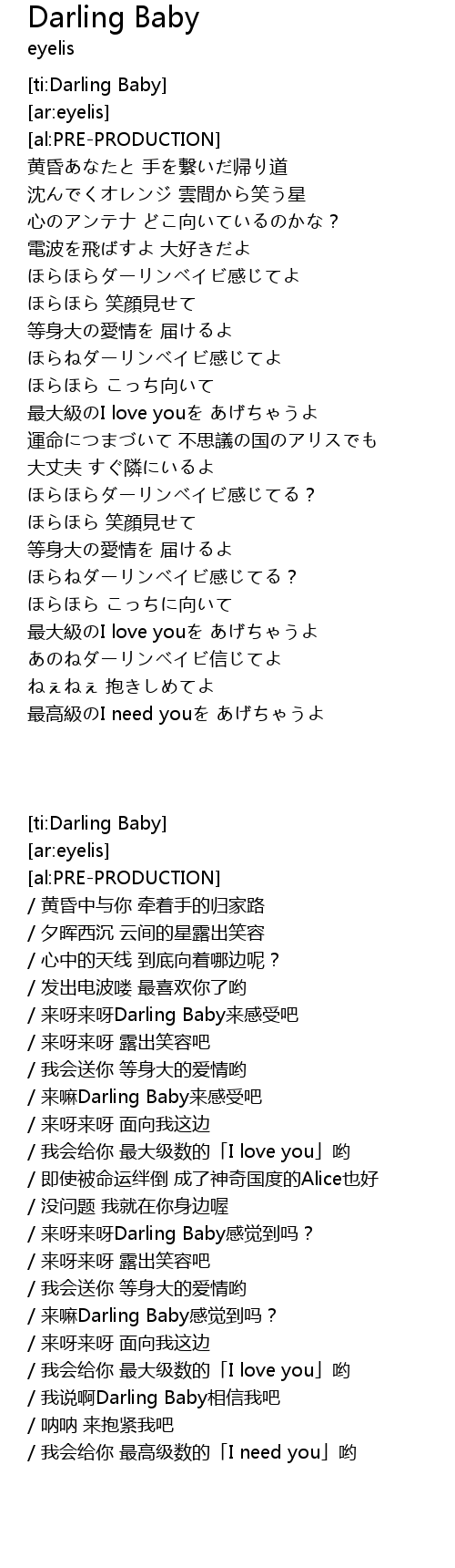 | [01:18.41] | ほらねダーリンベイビ感じてよ |