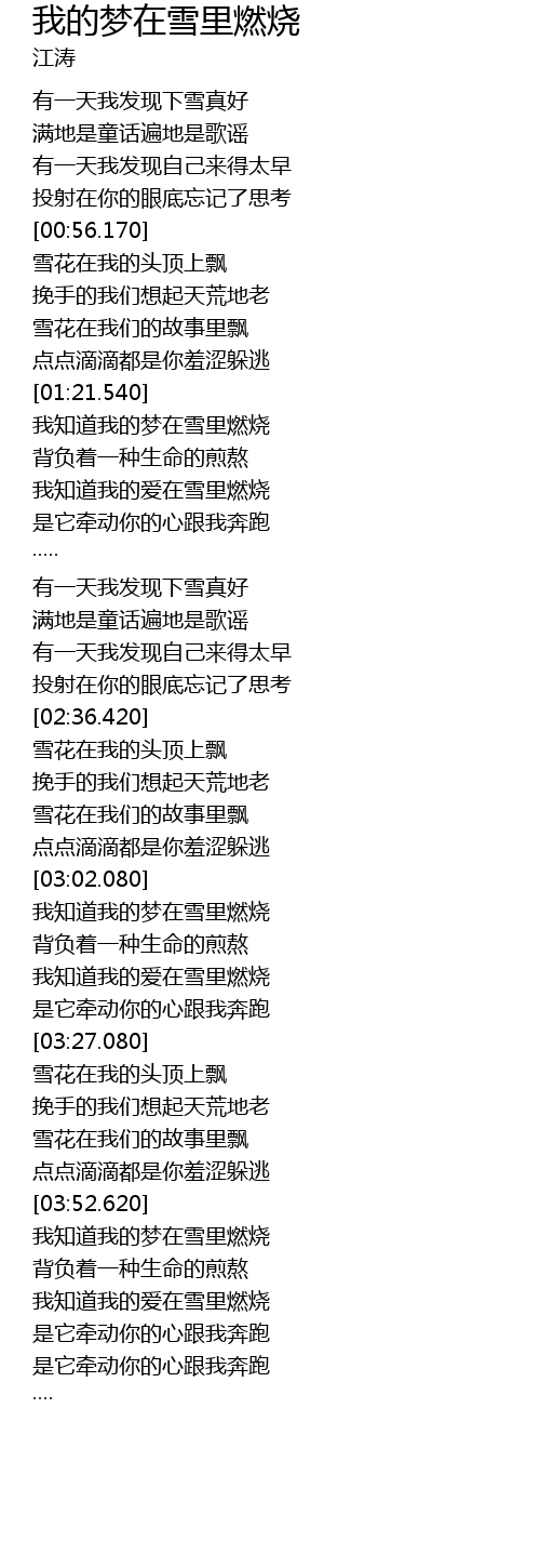 | [03:54.000] | 我知道我的梦在雪里燃烧 |