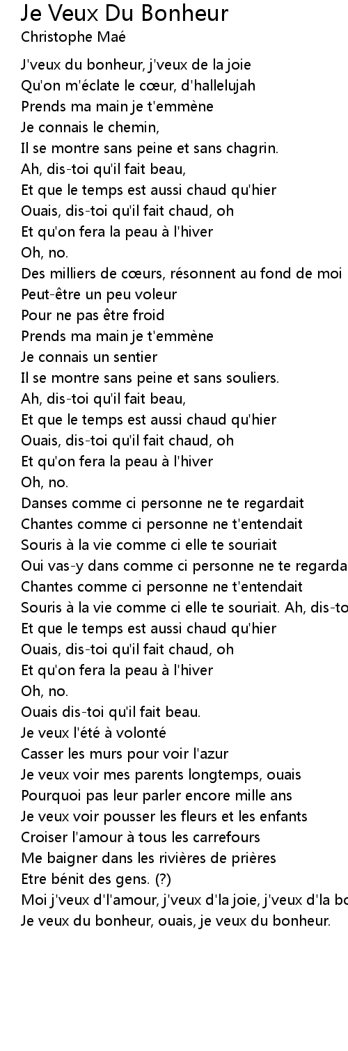 | J' veux du bonheur, j' veux de la joie | |