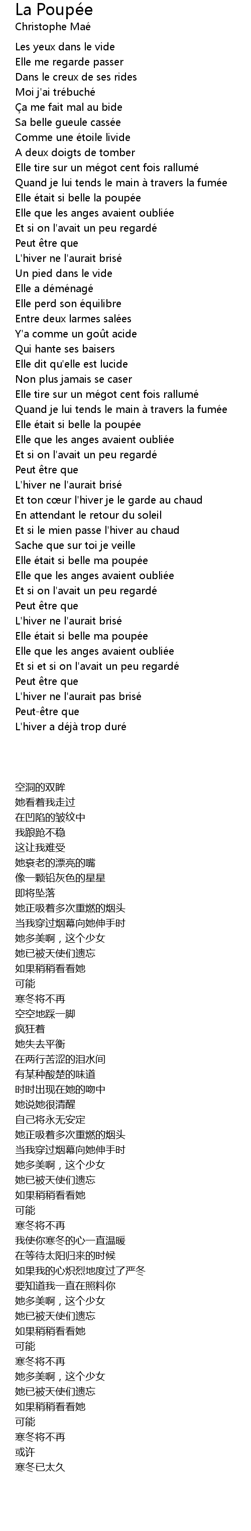 | [02:53.70] | L' hiver a de ja trop dure |