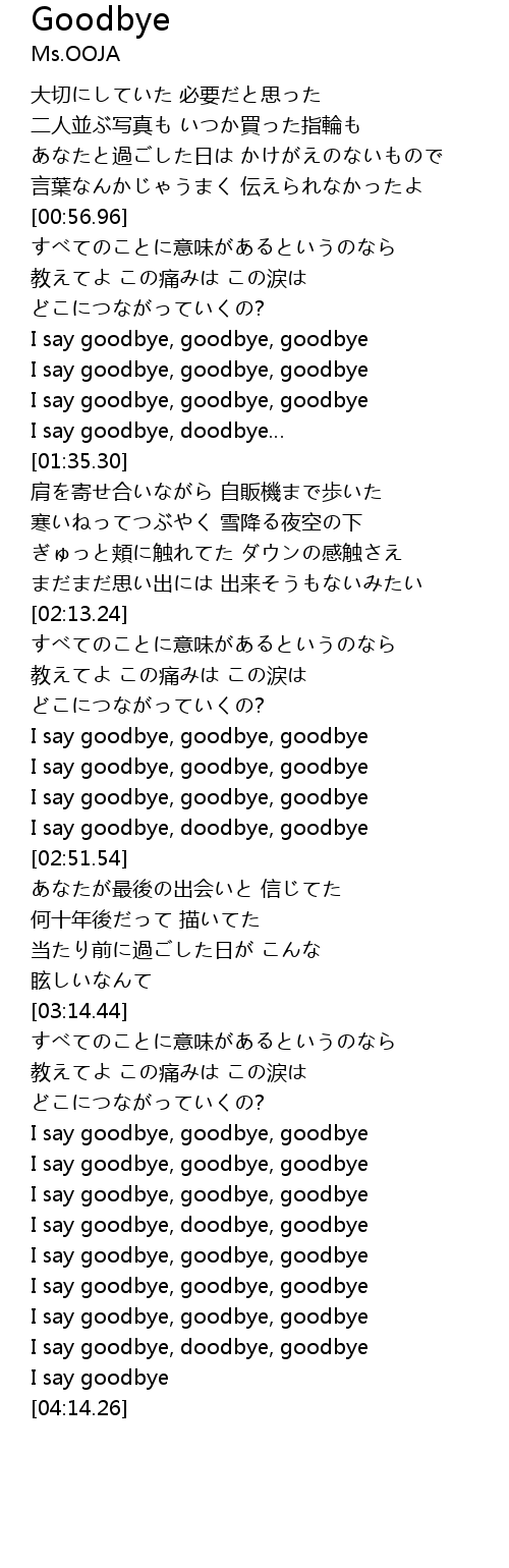| [02:41.61] | I say goodbye, goodbye, goodbye |