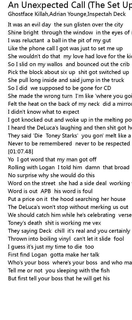 [00:57.90] I heard the DeLuca's laughing and then shit got hot