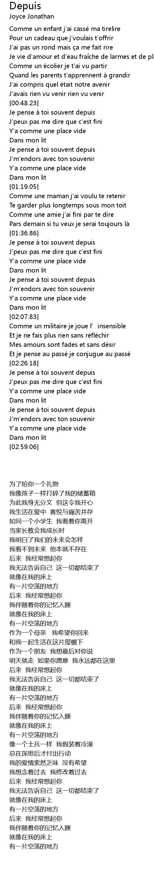 | [02:43.14] | Je pense à toi souvent depuis |