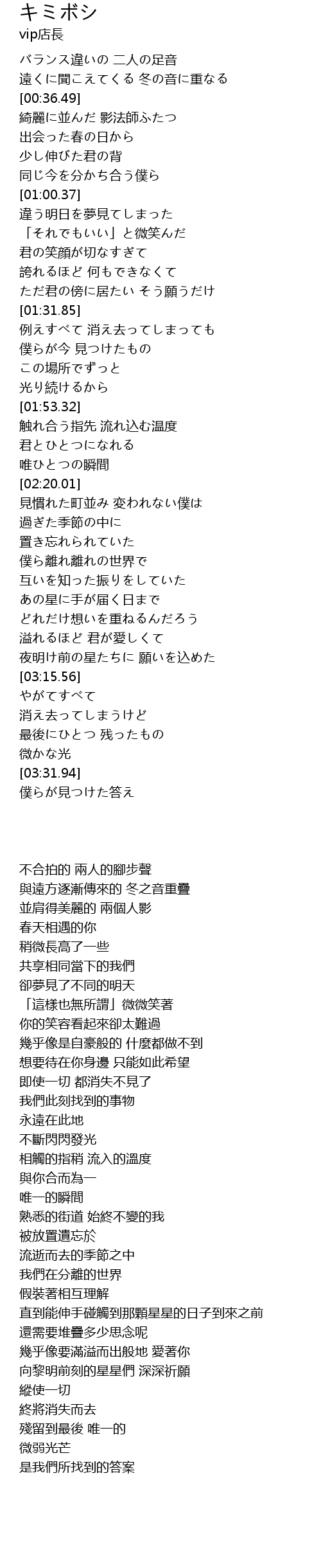 | [00:37.79] | 綺麗に並んだ 影法師ふたつ |