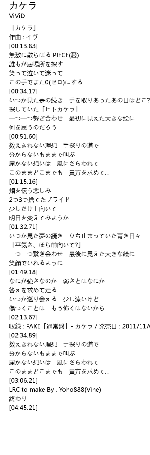 | [00:01.83] | 「カケラ」 |