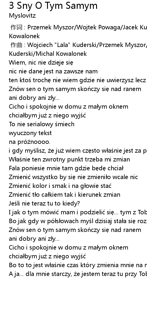 | [03:12.38] | Znó w sen o tym samym sko czy si nad ranem |