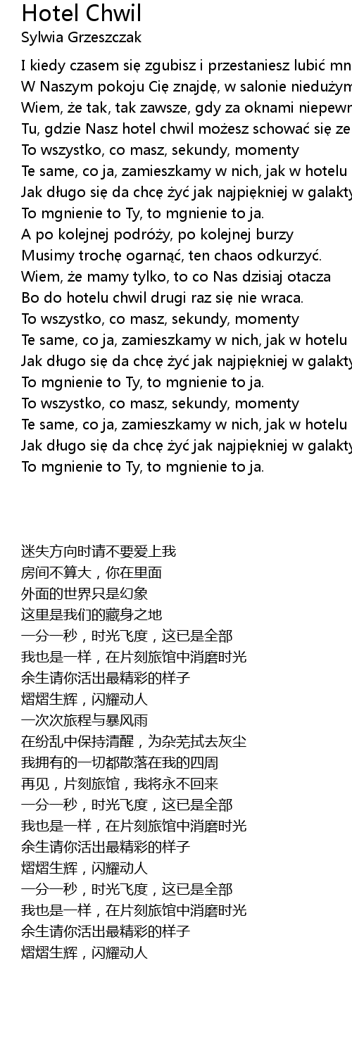 | [01:42.00] | Bo do hotelu chwil drugi raz się nie wraca. |