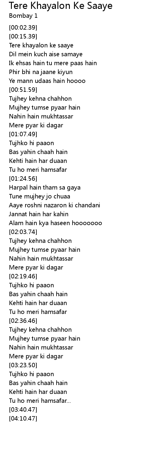 | [00:39.49] | Phir bhi na jaane kiyun |