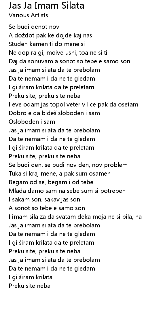 | [01:21.48] | Jas ja imam silata da te prebolam |