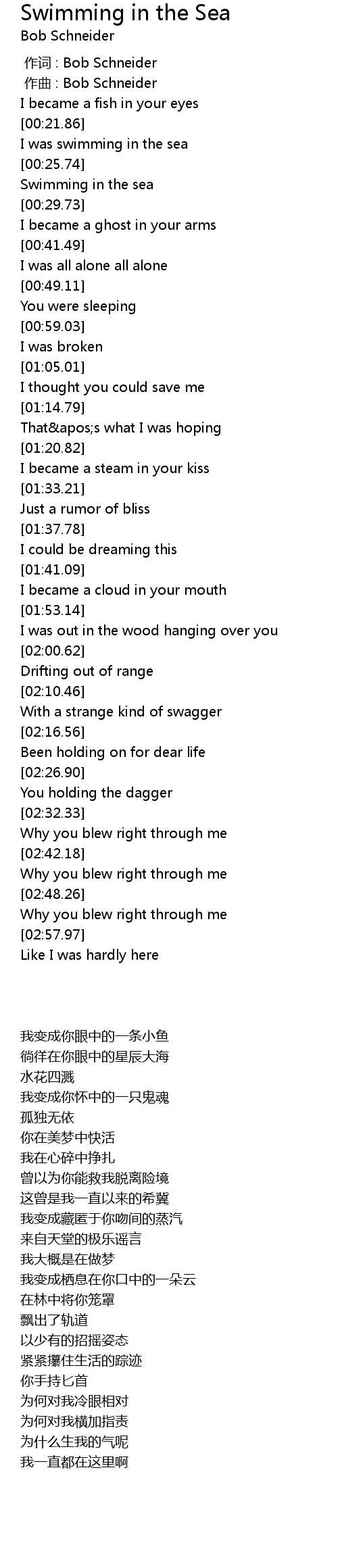 | [00:23.55] | I was swimming in the sea |
