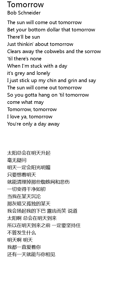 Tomorrow, tomorrow |