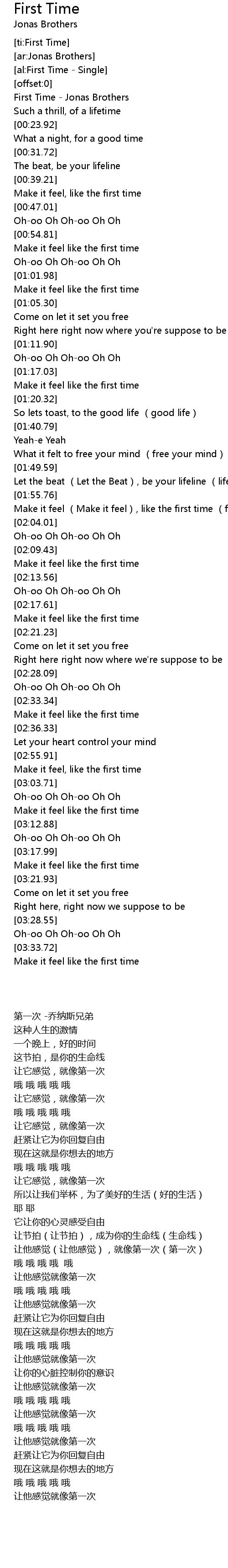 | [00:00.77] | First Time - Jonas Brothers |