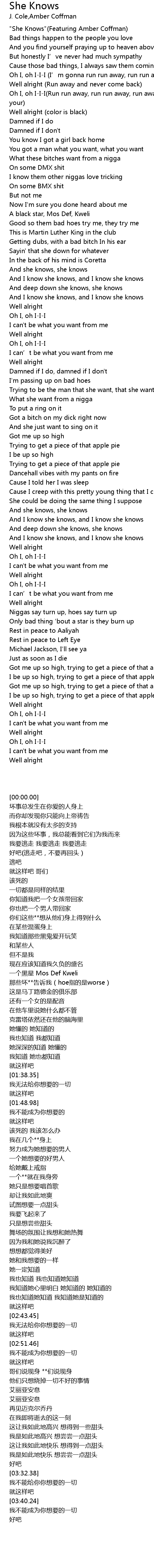 | [00:00.00] | "She Knows"(Featuring Amber Coffman) |