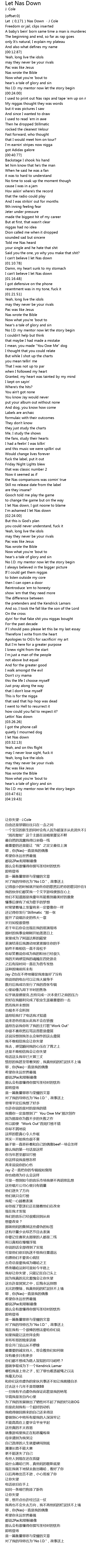 | [00:00.00] | Let (0,171)Nas Down - J Cole |