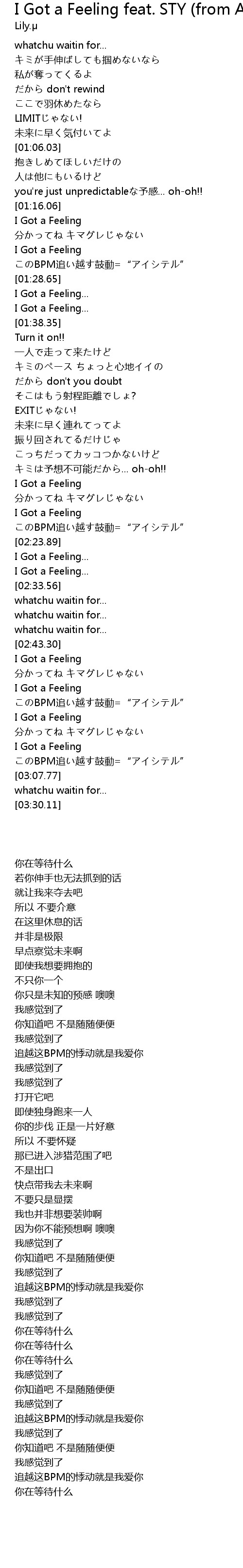 | Song | I Got a Feeling feat. STY (from ASY) |