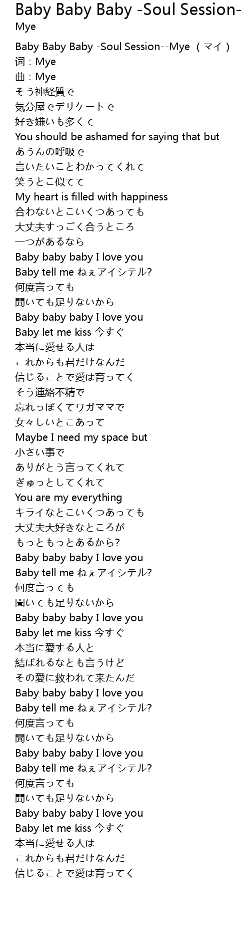 | [00:00.529] | Baby Baby Baby -Soul Session--Mye (マイ) |