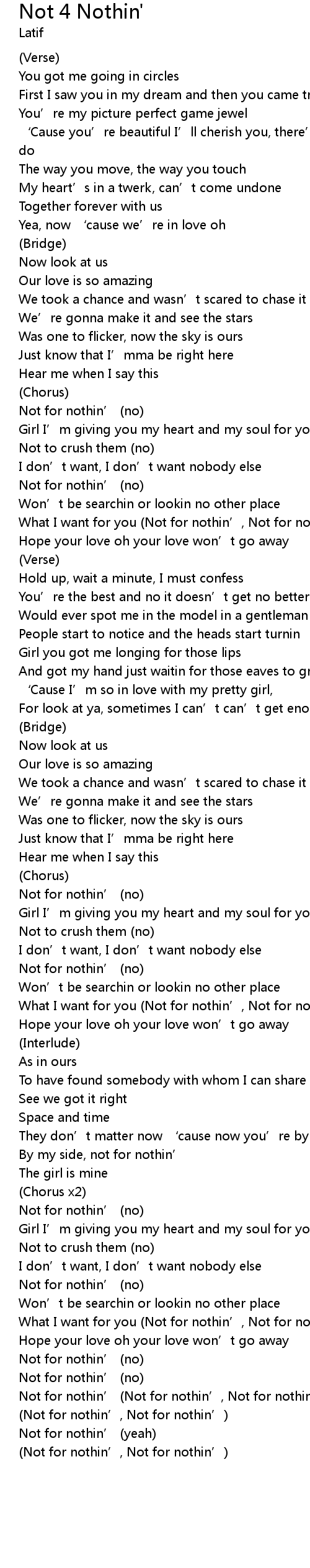 | Not for nothin’ (Not for nothin’, Not for nothin’) | |