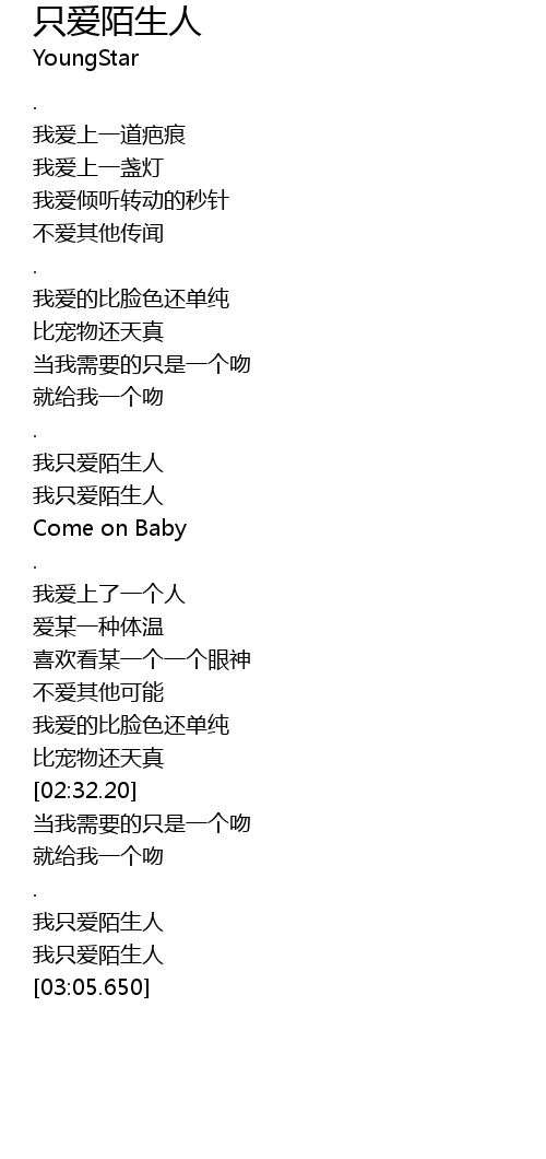 | [02:56.900] | wǒ zhǐ ài mò shēng rén |