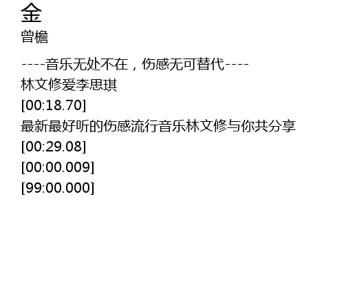 | [00:25.98] | 最新最好听的伤感流行音乐林文修与你共分享 |