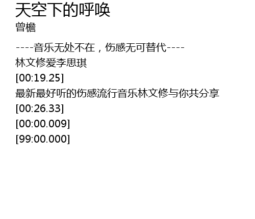 | [00:21.55] | 最新最好听的伤感流行音乐林文修与你共分享 |