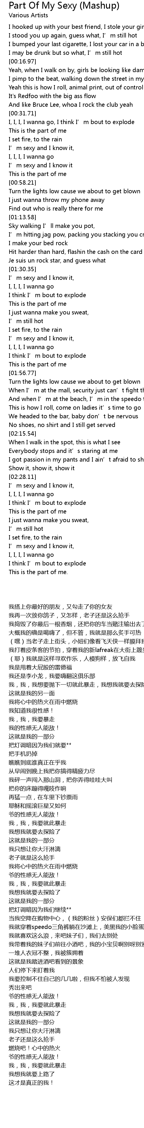 | [00:53.30] | I' m sexy and I know it |