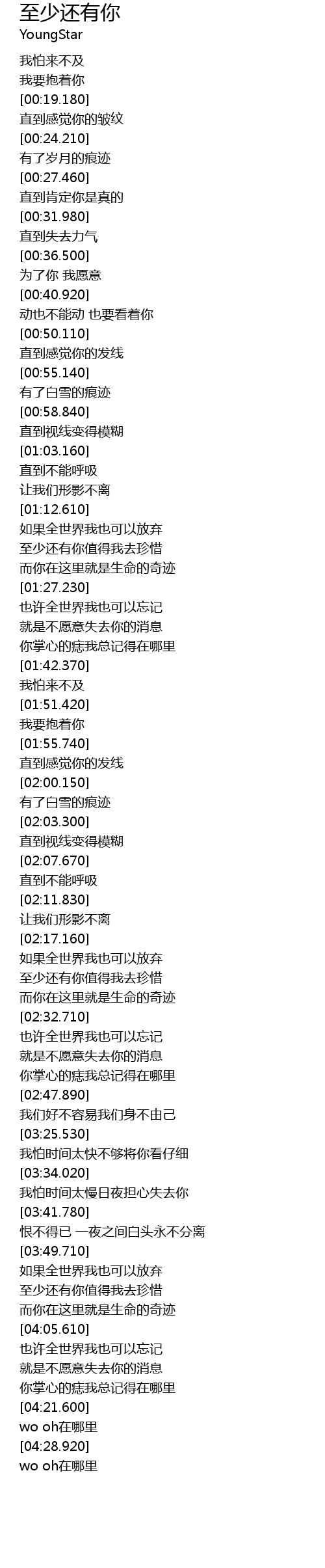 | [04:32.680] | wo oh在哪里 |