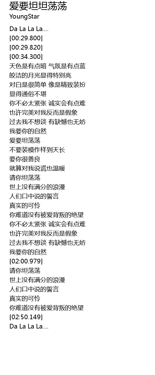 | [01:13.838] | ài yào tǎn dàng dàng |
