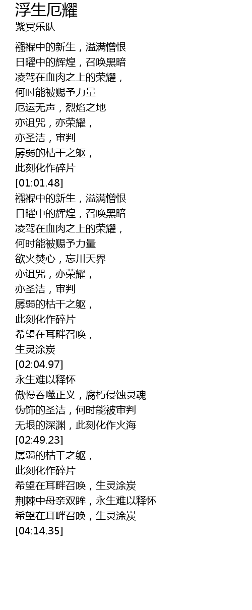 | [01:11.35] | 襁褓中的新生,溢满憎恨 |