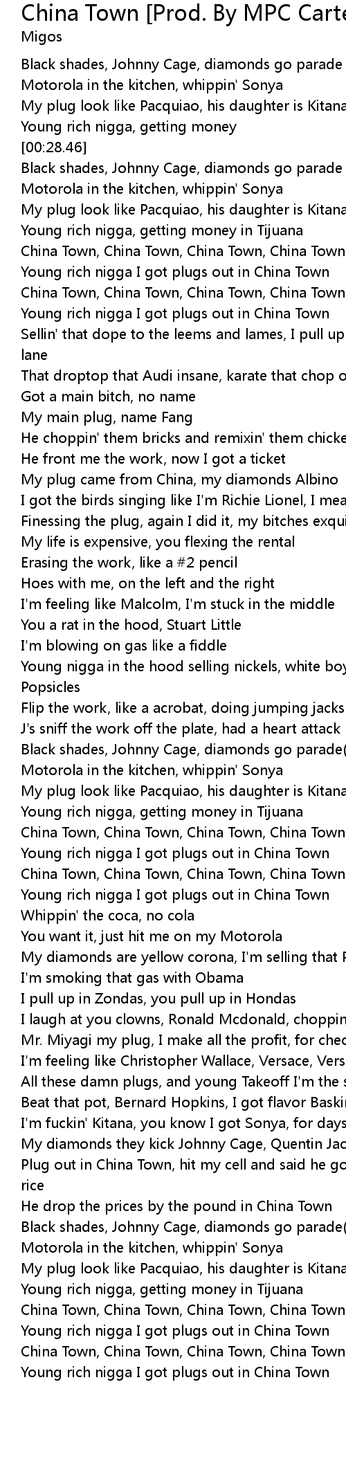 Plug out in China Town, hit my cell and said he got that shrimp fried rice |