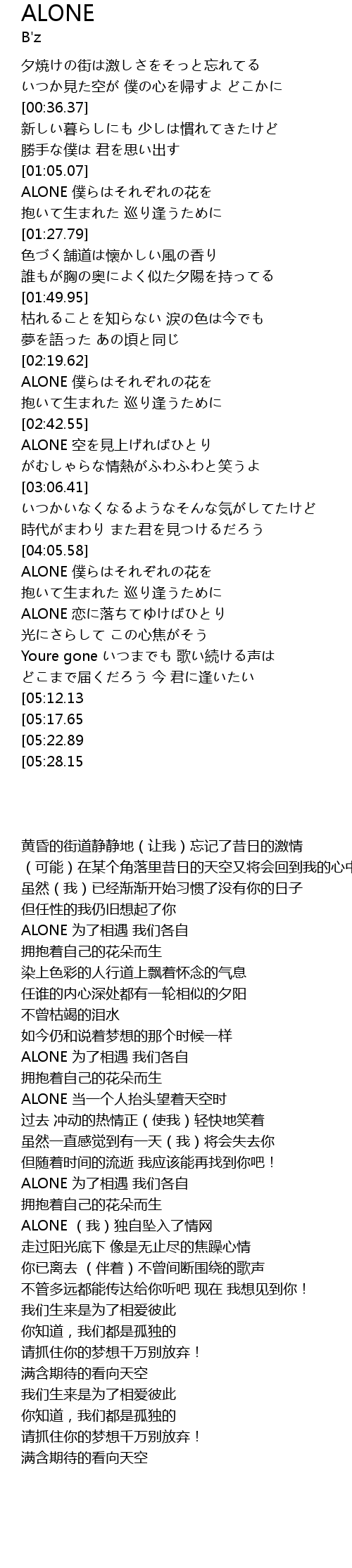 | [04:28.89] | ALONE liàn luò |