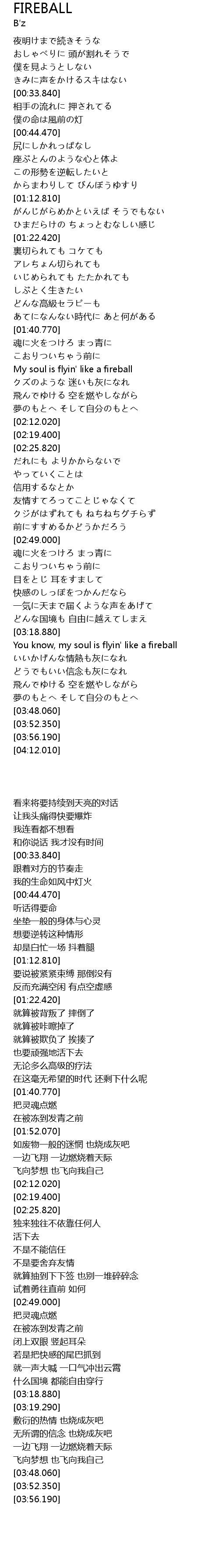 | [03:19.290] | You know, my soul is flyin' like a fireball |
