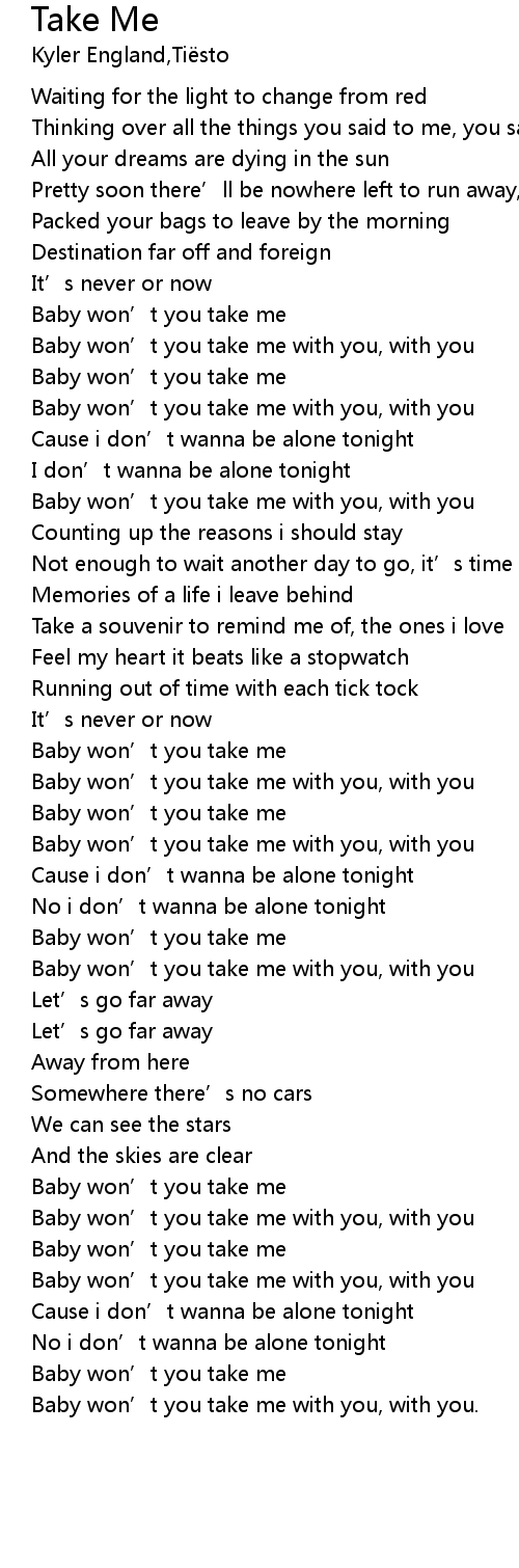 | Baby won’t you take me with you, with you. |