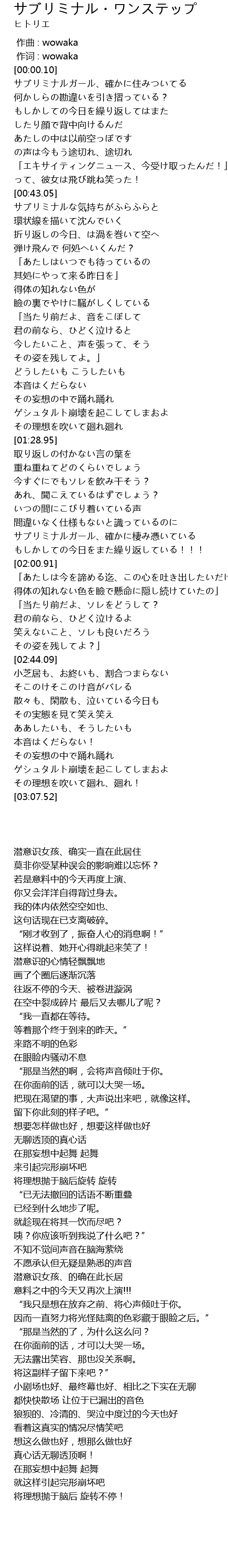| [01:55.20] | サブリミナルガール、確かに棲み憑いている |