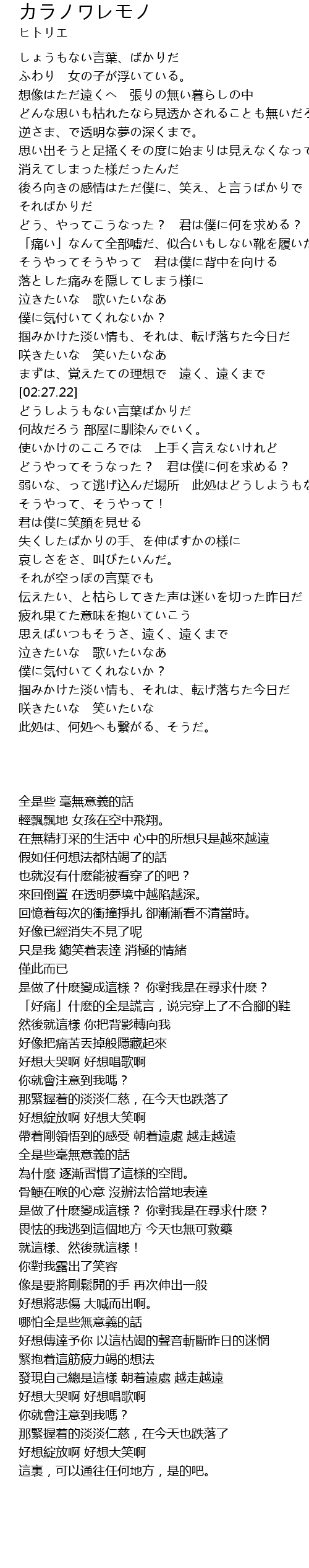 | [01:31.39] | どう、やってこうなった? 君は僕に何を求める? |