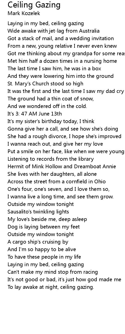 To lay awake at night, ceiling gazing. |