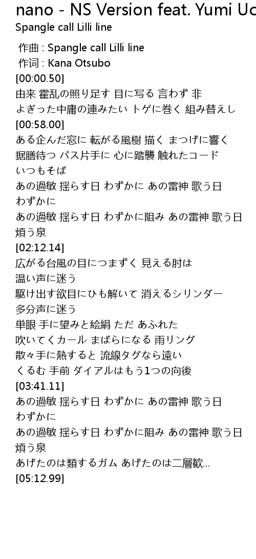 | [00:00.00] | zuo qu : Spangle call Lilli line |
