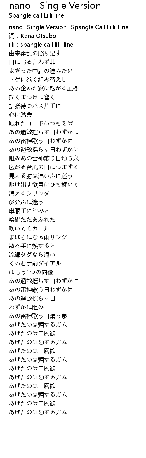 | [00:00.00] | nano Single Version Spangle Call Lilli Line |