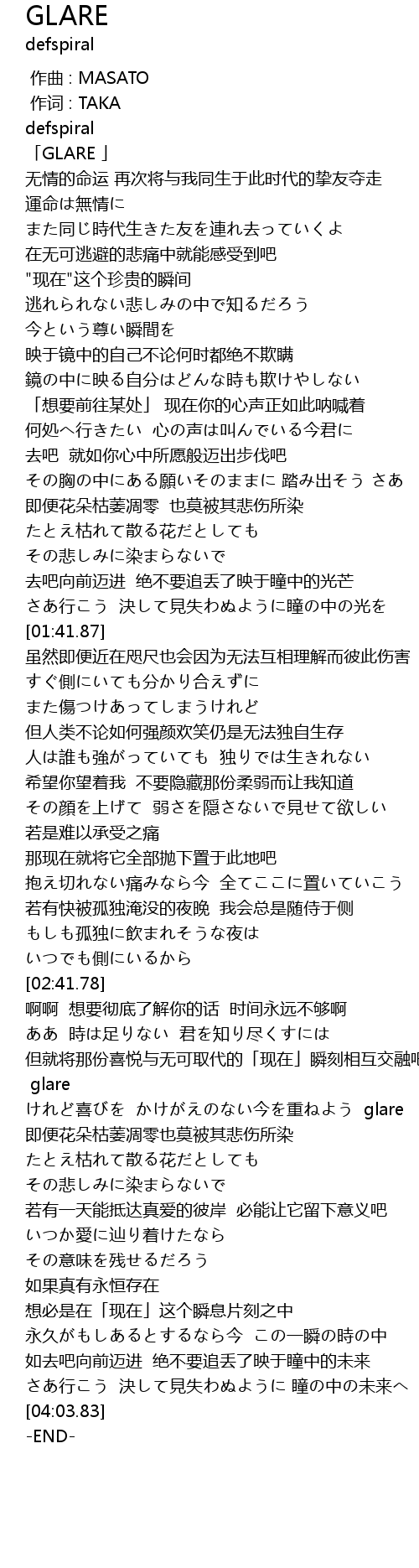 [03:10.51] けれど喜びを かけがえのない今を重ねよう glare