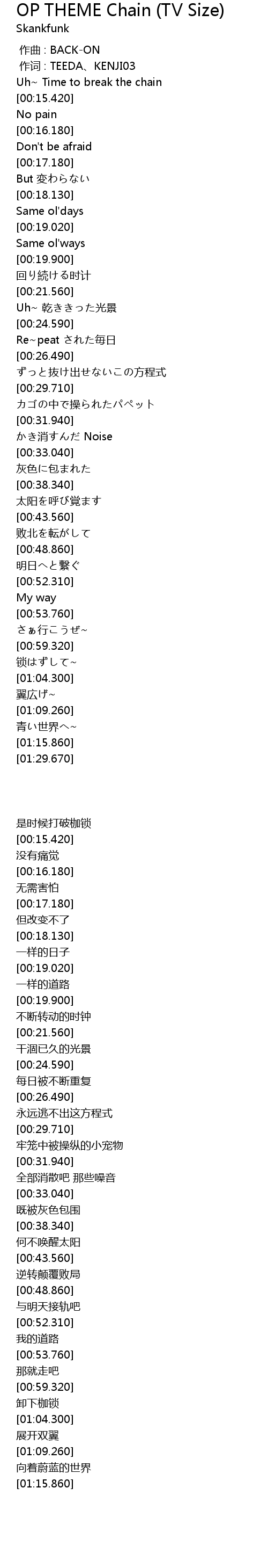 | [00:14.280] | Uh~ Time to break the chain |