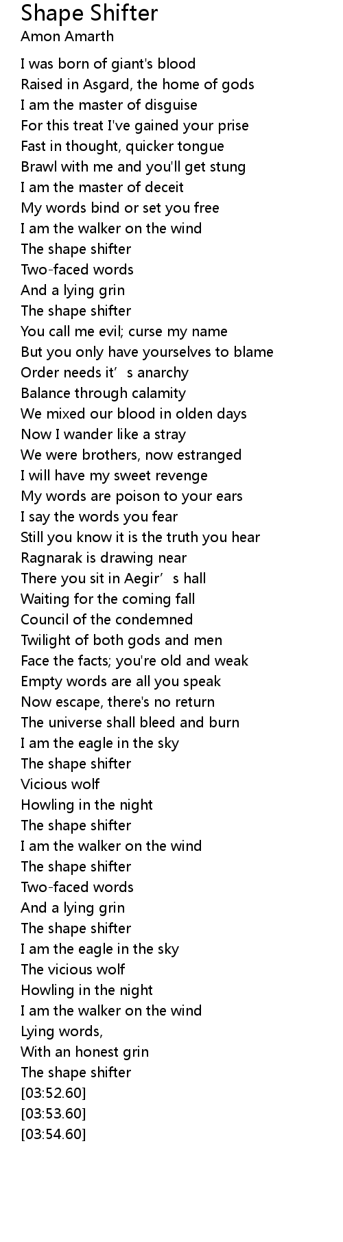 | [03:21.98] | The shape shifter |