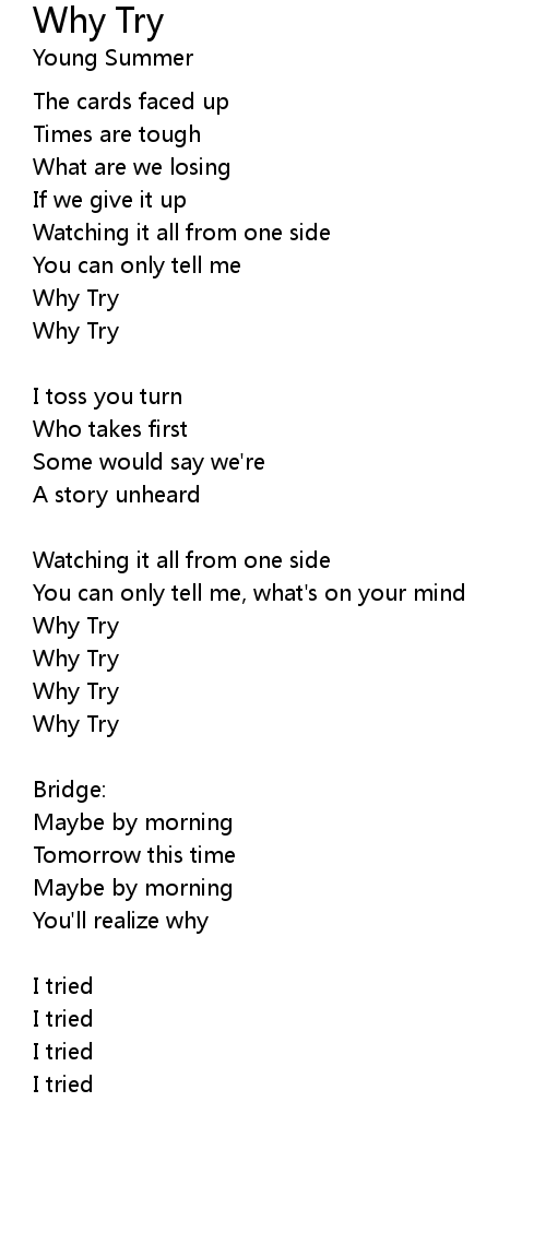 | Song | Why Try |