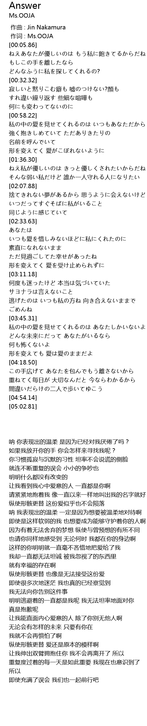 | [00:01.00] | zuo ci : Ms. OOJA |